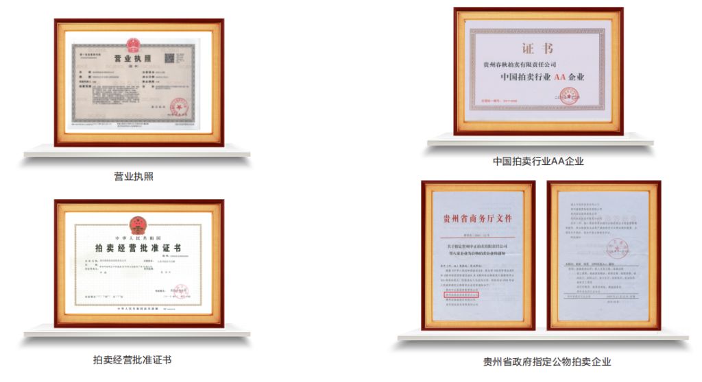 貴州春秋拍賣有限責(zé)任公司,于2005年1月經(jīng)貴州省商務(wù)廳、貴陽市工商行政管理局批準(zhǔn)正式成立,注冊(cè)資本200萬元。公司是首批獲得拍賣經(jīng)營批準(zhǔn)證書的中國拍賣行業(yè)AA企業(yè)、中國拍賣行業(yè)協(xié)會(huì)理事單位、貴州省人民政府指定公物拍賣企業(yè)、貴州省拍賣行業(yè)協(xié)會(huì)副會(huì)長單位、貴州省省級(jí)守合同重信用單位。公司自成立起就制定了具有前瞻性的發(fā)展戰(zhàn)略,制定了穩(wěn)固貴州省頂級(jí)拍賣企業(yè)的計(jì)劃和思路,立志成為全國拍賣龍頭企業(yè)和標(biāo)桿企業(yè)。
