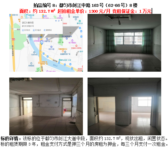 8、都勻市劍江中路163號(hào)(62-66號(hào))8樓住房(右)3年租賃權(quán)(面積約132.7㎡);