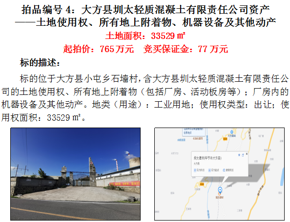 4、大方縣圳太輕質(zhì)混凝土有限公司資產(chǎn)(土地面積為33529㎡);