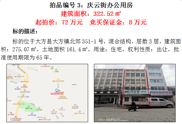 5、大方縣交通路(慶北春路)4間門面(建筑面積分別為:28.09㎡、31.09㎡、39.59㎡、24.38㎡);