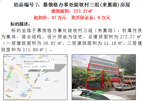 6、慕俄格辦事處陡坡村三組(來熏路)住宅,(總建筑面積為272.27㎡);