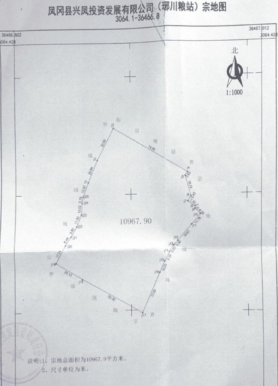 鳳岡縣琊川鎮(zhèn)街道上(原糧站)一宗地(土地面積:10967.9㎡,權(quán)利類型:國有建設(shè)用地使用權(quán),權(quán)利性質(zhì):出讓,用途為:商服用地/住宅用地)。