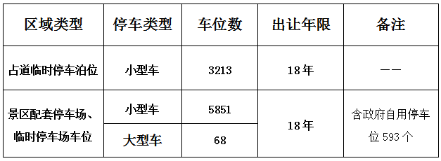 黃果樹風景名勝區(qū)公共停車場出讓經(jīng)營權(quán),車位數(shù):9132個,出讓年限:18年。