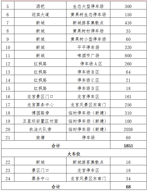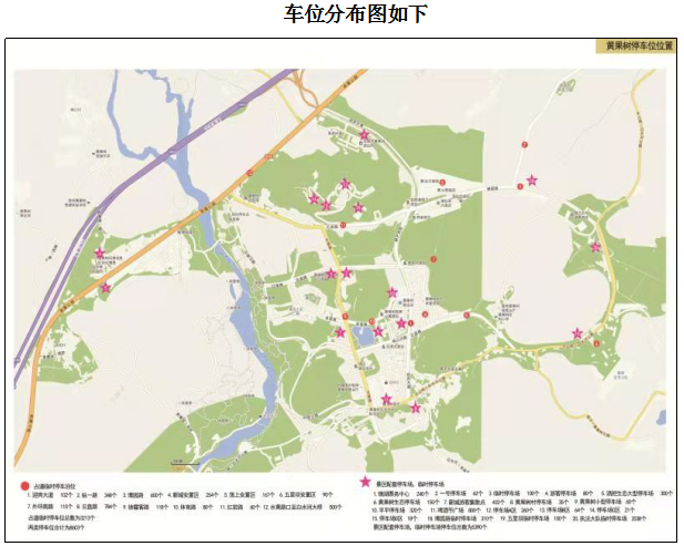 2.該標的共計車位車9132個,出讓年限18年(含1年建設(shè)期),其中占道臨時停車泊位3213個,景區(qū)配套停車場、臨時停車場車位5919個,停車位分布詳見附件1(表1、表2),停車位具體收費標準詳見:黃管委發(fā)〔2019〕7號黃果樹旅游管理委員會關(guān)于印發(fā)《黃果樹旅游區(qū)停車場收費管理辦法》的通知。