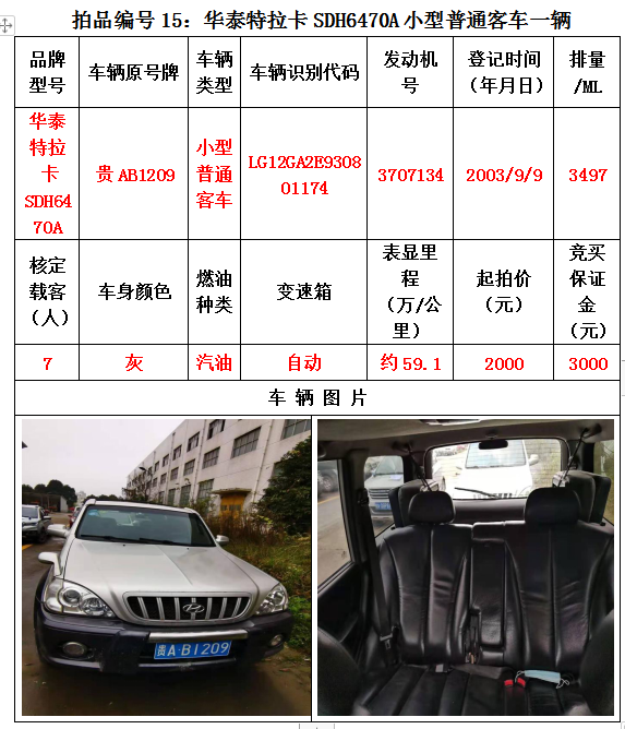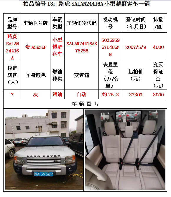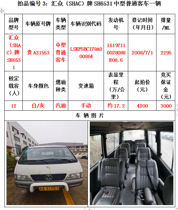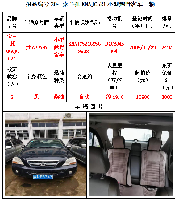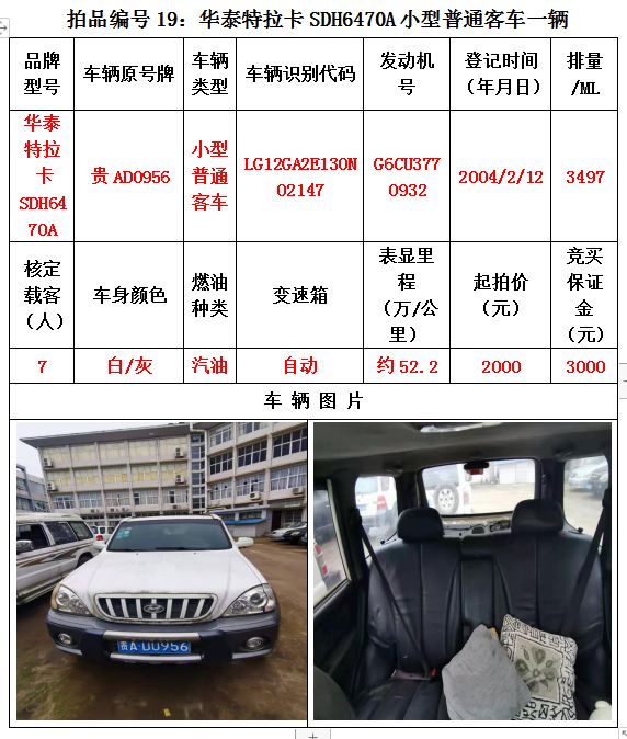 受委托,我公司定于2020年12月25日(星期五)下午14:30在貴陽(yáng)市云巖區(qū)浣紗路19號(hào)泰合爾酒店三樓會(huì)議室公開拍賣以下標(biāo)的: