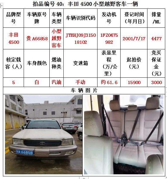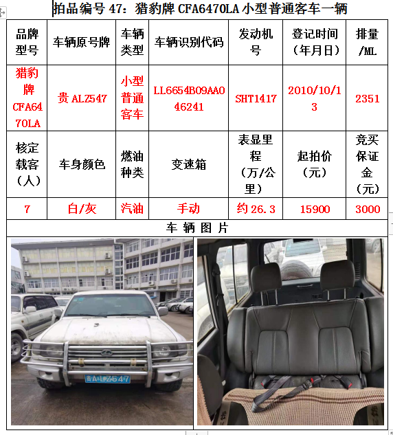 路虎牌、雙龍雷斯特牌、索蘭托牌、三菱帕杰羅牌、華泰特拉卡牌、華泰圣達(dá)菲牌、獵豹牌、萬里牌、豐田陸地巡洋艦吉普牌、寶龍牌、尼桑牌、蒙迪歐牌、凌志牌等共計(jì)47輛車