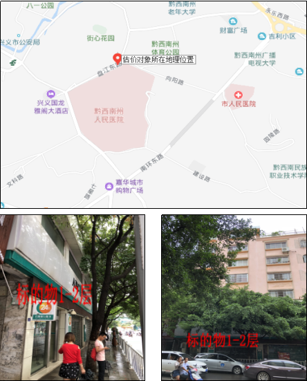 1、標的物位于興義市盤江東路49號A幢第1號1-2層的綜合房地產(chǎn),標的物建成于2005年,南面臨盤江東路,其余三面均臨多層建筑樓棟。混合結構,水電、生活燃氣、消防等設施齊全。使用正常,維護狀況較好,普通裝修,地面鋪地磚,墻面及頂面刮瓷粉刷乳膠漆,鋁合金窗,防盜門、卷簾門、木門。