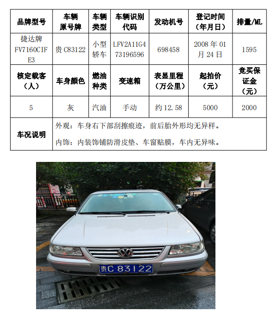 本次拍賣會的拍賣標的(拍品編號1-5共計5輛車),分別為桑塔納牌、捷達牌、昊銳牌、獵豹牌,為打包整體拍賣,不作拆分,整體起拍價:77200元,且只對標的現(xiàn)狀進行拍賣,不作任何質(zhì)量擔保。