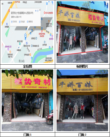 標的位于遵義市湄潭縣湄江鎮(zhèn)四十米大道農資綜合市場。建筑面積:110㎡,混合結構,房屋所有權證:遵房權證湄潭縣字第00007841號,混合結構;國有土地使用證:湄國用(2003)字第01-257號,用途為:商業(yè)用地,使用權類型為:出讓用地。