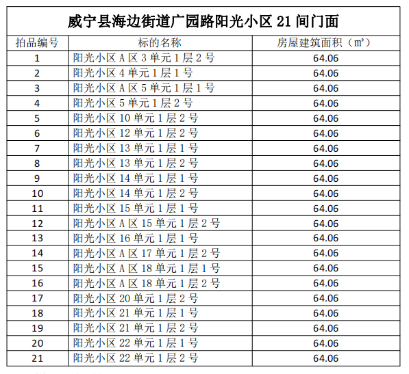 三、拍品16-21號:威寧縣海邊街道廣園路陽光小區(qū)6間門面