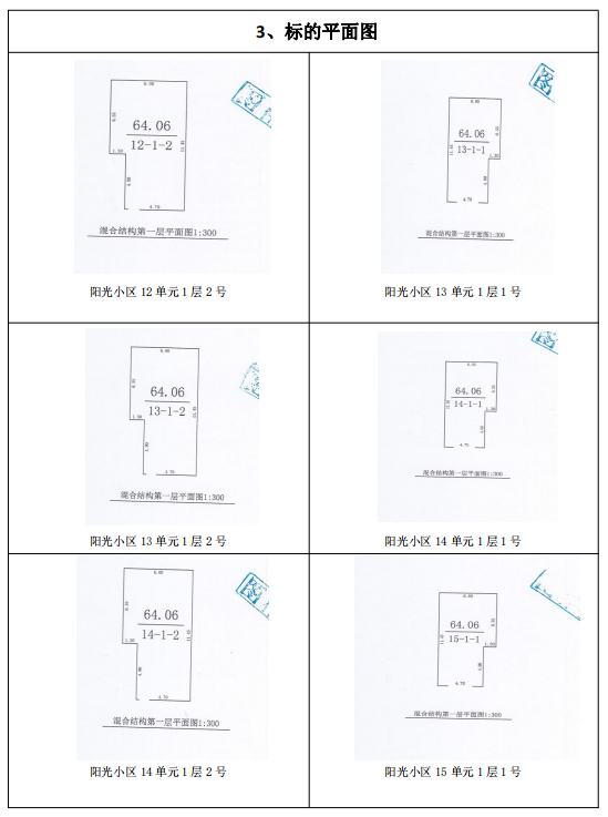 拍品編號6-15號標(biāo)的位于威寧縣海邊街道廣園路陽光小區(qū),房屋結(jié)構(gòu)均為:混合結(jié)構(gòu),權(quán)利性質(zhì):國有土地/出讓/其他,用途:商服用地/商業(yè)服務(wù),使用期限:2012年12月20號至2052年12月19日。