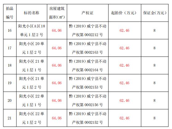 威寧縣陽光小區(qū)21間門面拍賣公告