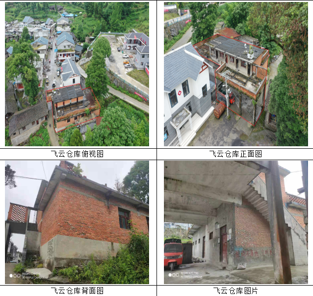 飛云倉庫,位于遵義市新蒲新區(qū)永樂鎮(zhèn)飛云村田壩組,1993年修建,磚混結(jié)構(gòu),建筑面積:約416.71㎡,土地面積:約334.93㎡,土地性質(zhì):劃拔,土地用途:倉儲(chǔ),無土地使用證和房屋產(chǎn)權(quán)證。房屋危險(xiǎn)性等級鑒定為D級。