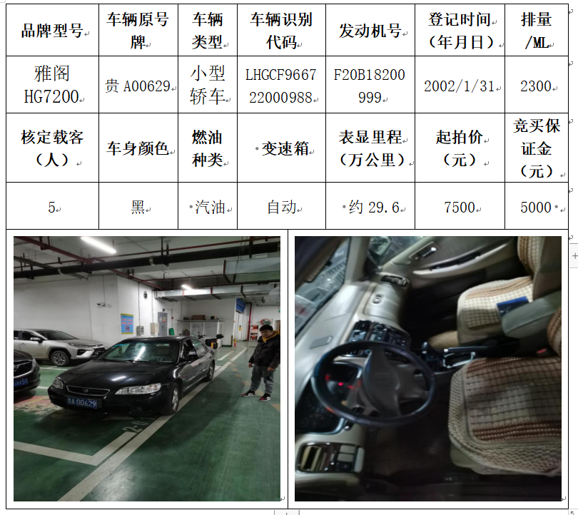 拍品編號4:別克牌SGM6527AT小型普通客車一輛