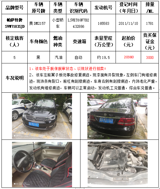 受委托,本公司定于2021年9月16日(星期四)下午14:30時,在銅仁市碧江區(qū)川硐教育園區(qū)誠信路銅仁市公共資源交易中心開標六室(拍賣大廳)公開拍賣以下車輛: