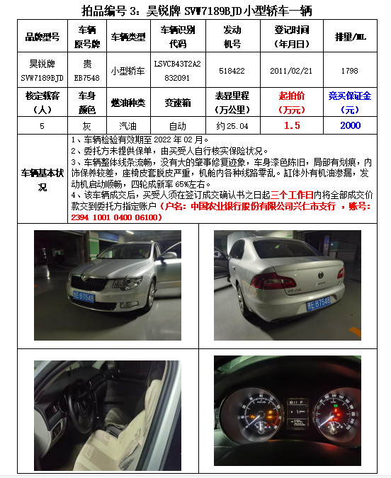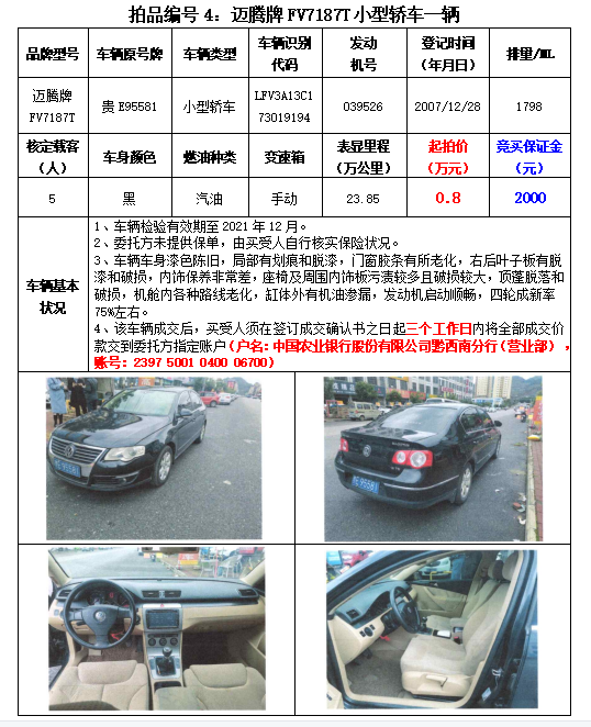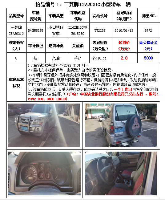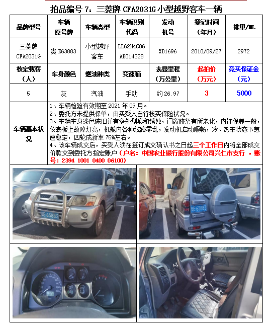 【已結(jié)束】黔西南7輛車輛拍賣公告