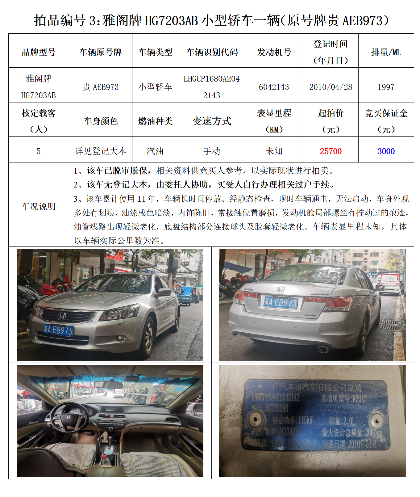 機(jī)動車拍賣公告