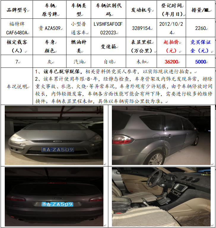 拍品編號2:福特牌CAF6480A小型普通客車一輛