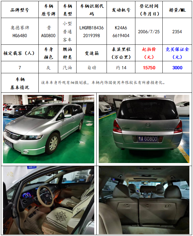 拍品編號3:奧德賽牌HG6480小型普通客車一輛