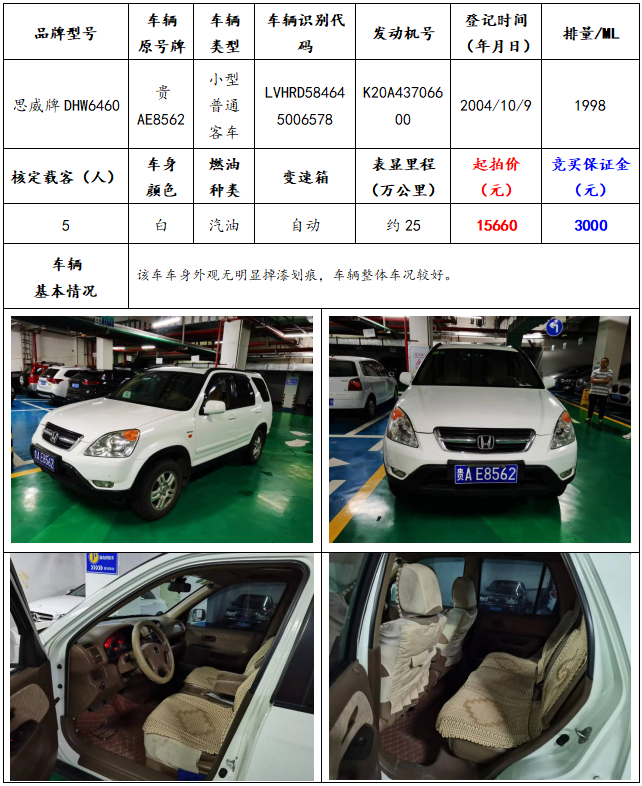 拍品編號4:思威牌DHW6460小型普通客車一輛