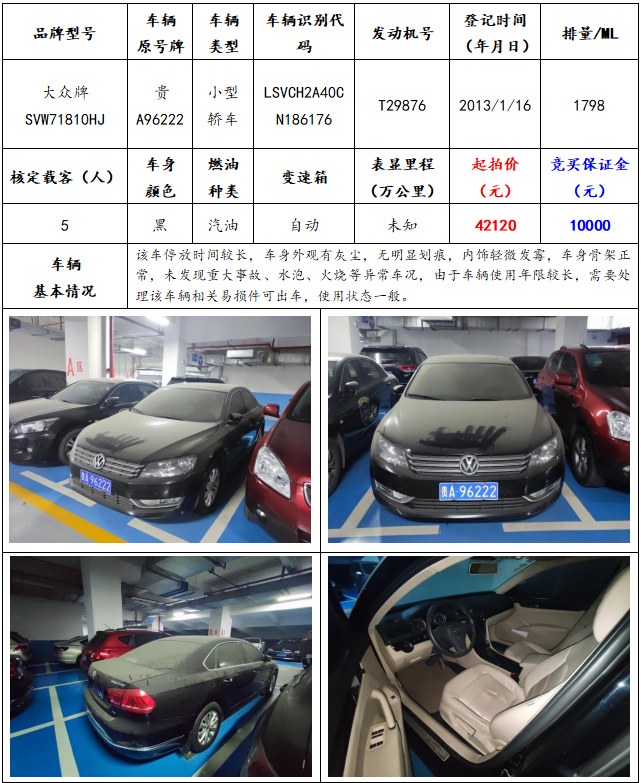 拍品編號5:大眾牌SVW71810HJ小型轎車一輛