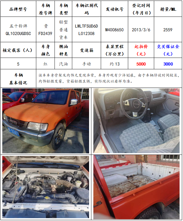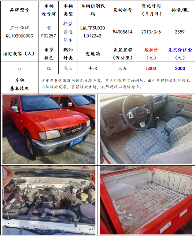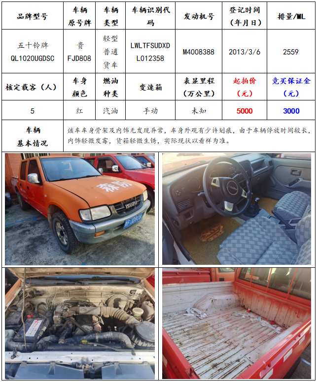 拍品編號8:五十鈴牌QL1020UGDSC輕型普通貨車一輛