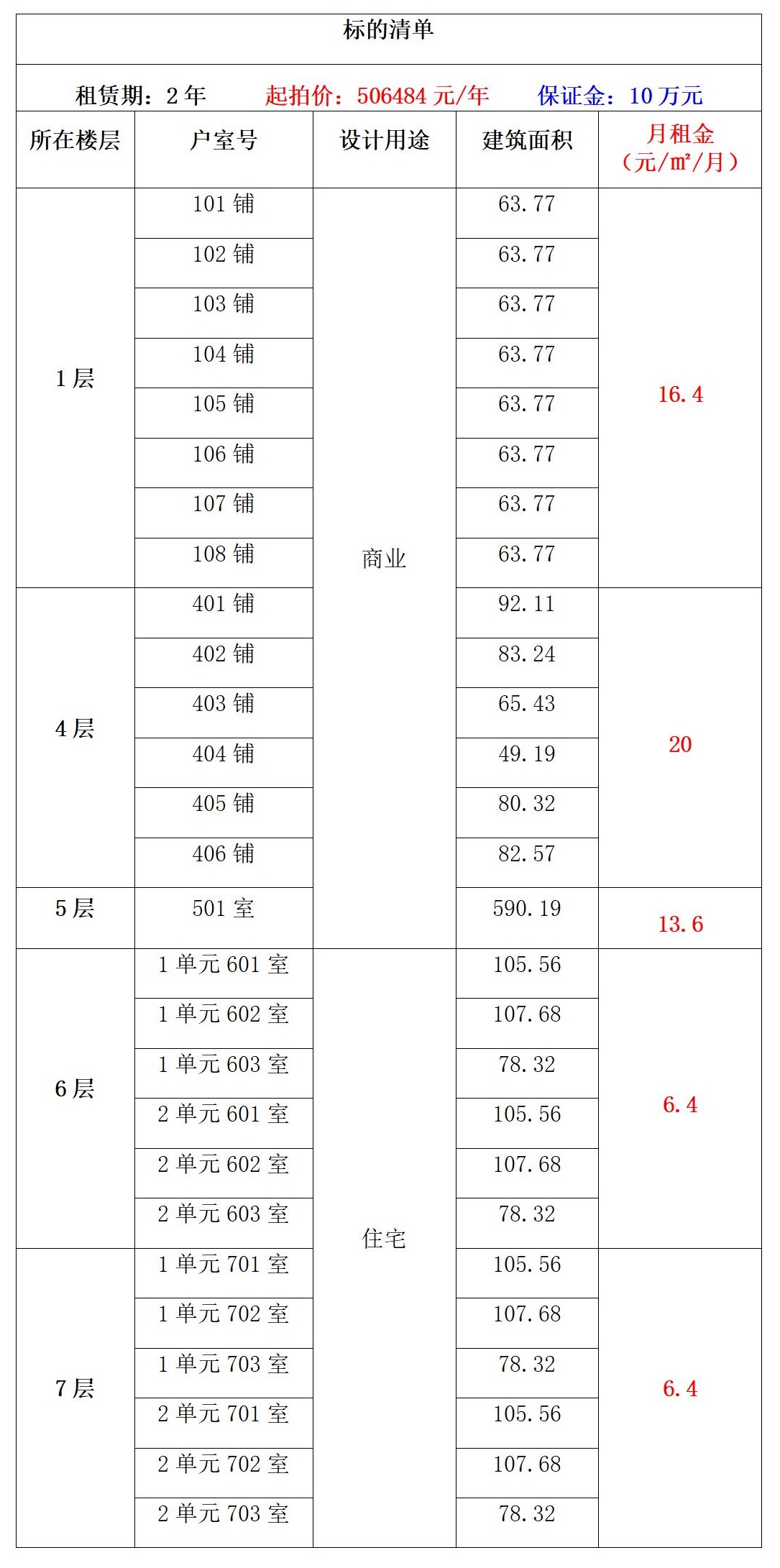 租賃期:2年 起拍價:506484元/年 競租保證金:10萬元