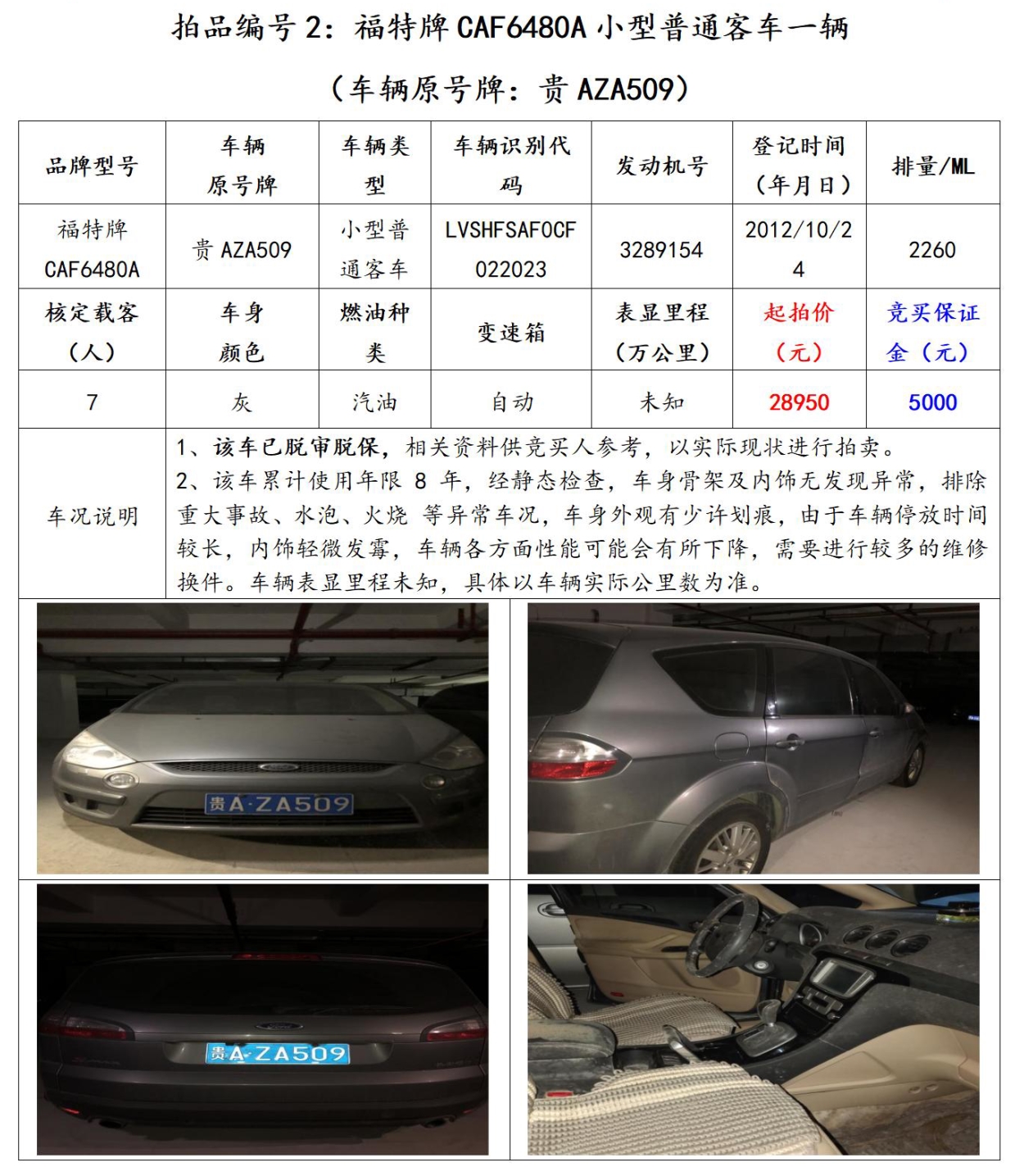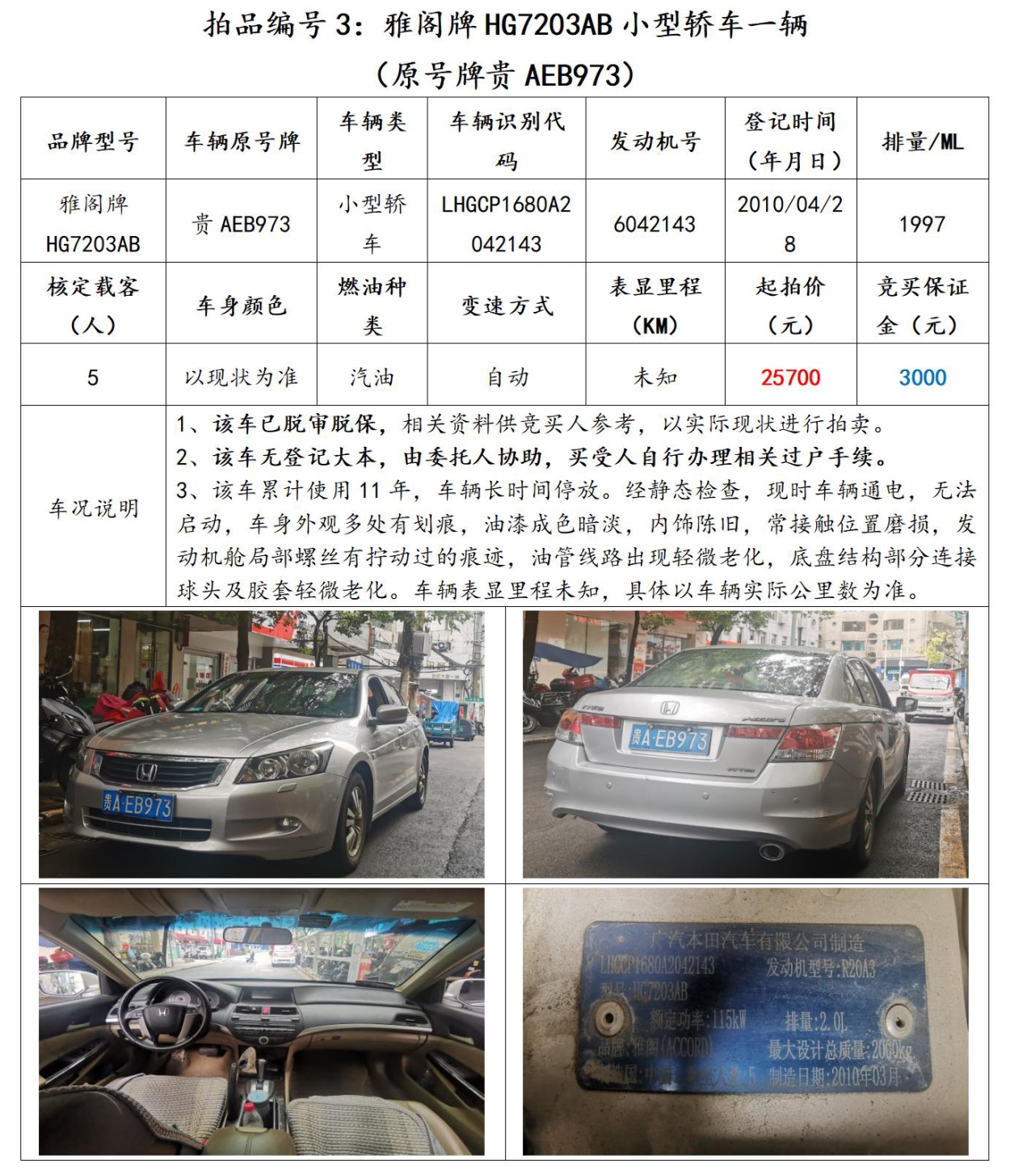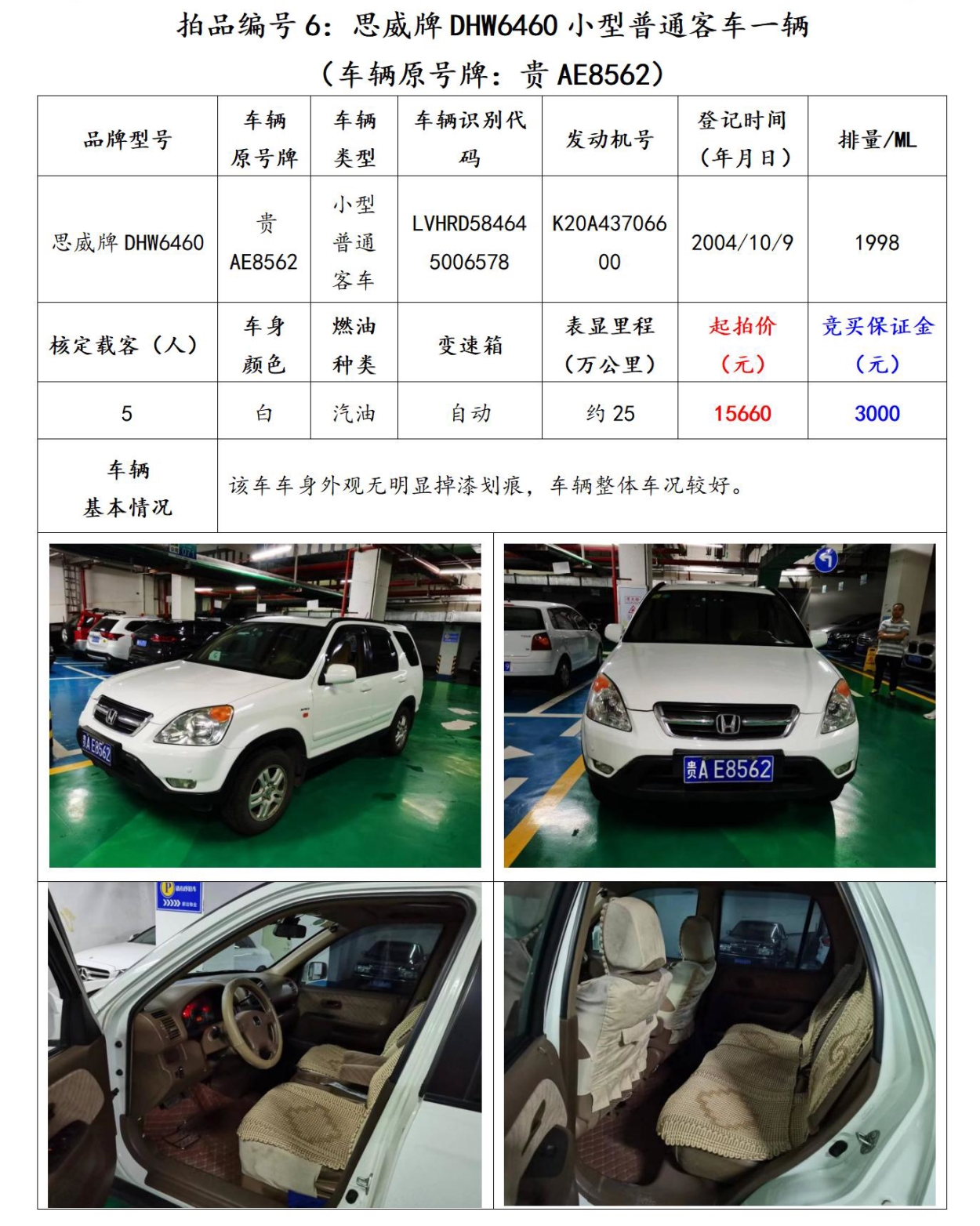 【已結束】貴陽市6輛機動車拍賣公告
