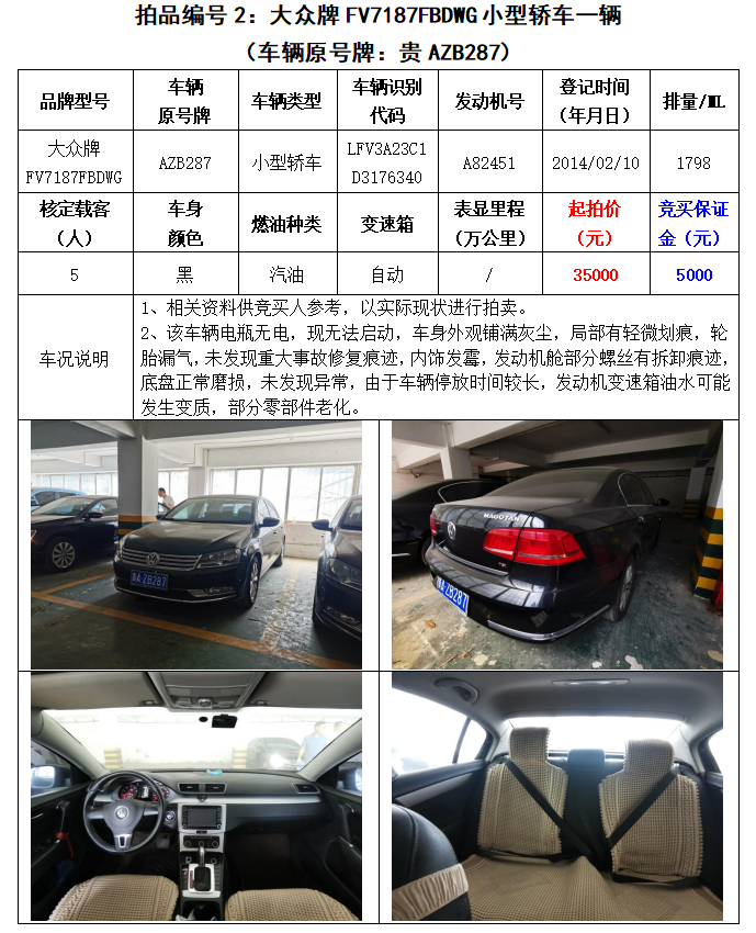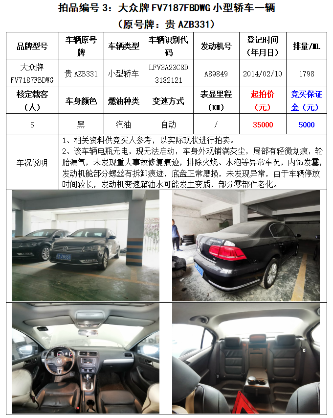 大眾牌FV7166FAAGG小型轎車、大眾牌FV7187FBDWG小型轎車,共計(jì)三輛。
