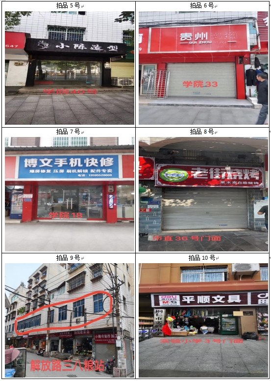 拍品2號(hào)至6號(hào)標(biāo)的:位于清水大道銅仁附中對(duì)面,面積均為:27.5㎡,租賃期均為3年(2023年7月1日至2026年6月30日),附近有車站、醫(yī)院、銀行、酒店、超市、學(xué)校等,交通便利,人流量大。