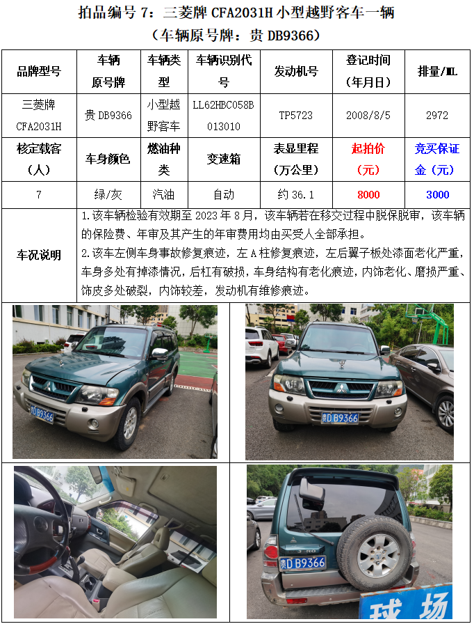 【已結(jié)束】銅仁市8輛機(jī)動(dòng)車拍賣