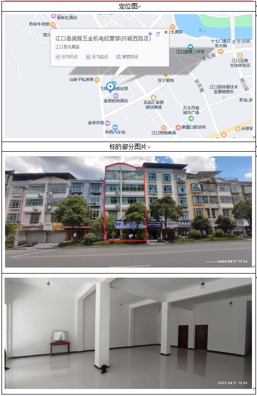 2、標(biāo)的房權(quán)證號(hào):江房權(quán)證2005字第00003517號(hào)。房屋總建筑面積:958.93㎡,設(shè)計(jì)用途:商??;磚混結(jié)構(gòu)。標(biāo)的國(guó)有土地使用證號(hào):江國(guó)用(2004)第600號(hào)。土地使用權(quán)面積:200㎡,地類(用途):商??;使用權(quán)類型:出讓;終止日期:2054年8月12日。