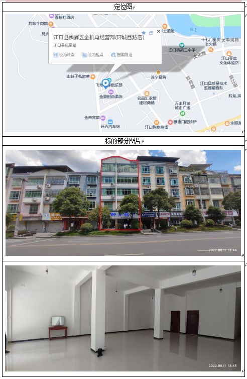2、江口縣雙江鎮(zhèn)龍井廣場(chǎng)江源山水20棟1層2號(hào)一樓商業(yè)門(mén)面一間,建筑面積:744.3㎡,起拍價(jià)2992100元,競(jìng)買(mǎi)保證金:40萬(wàn)元。