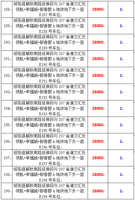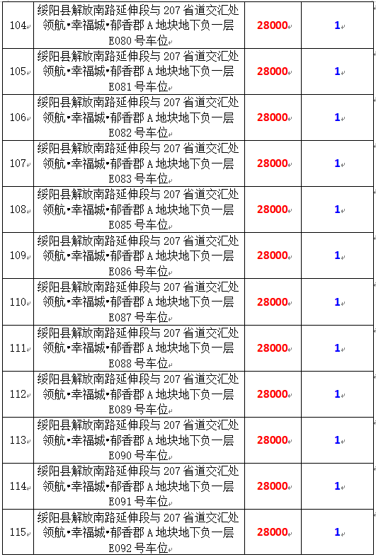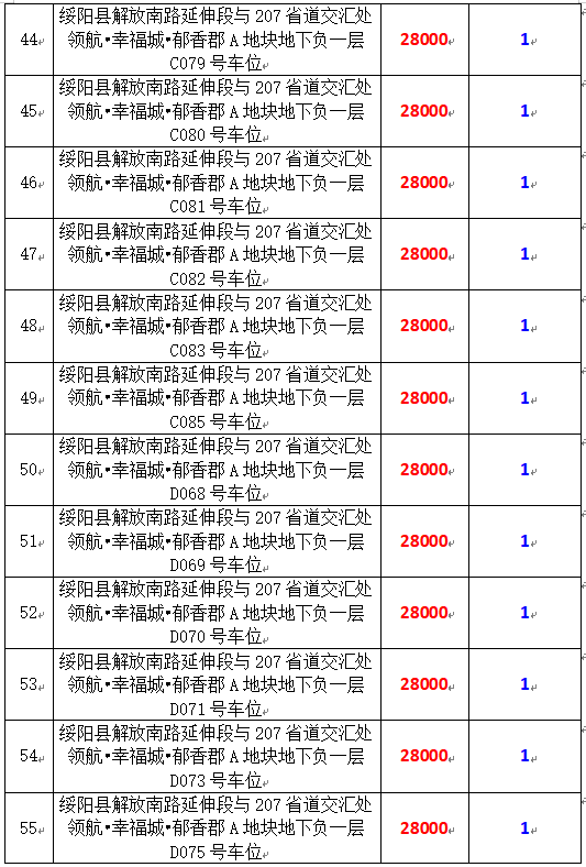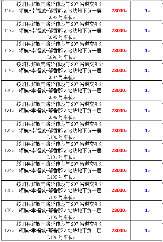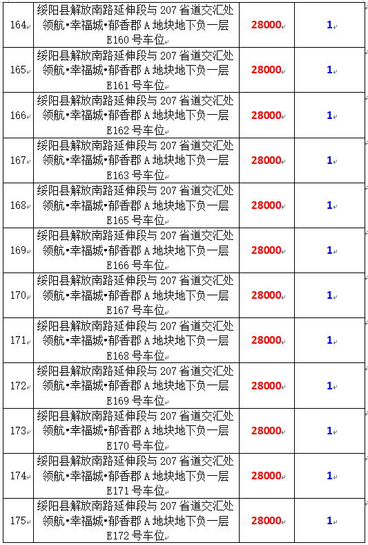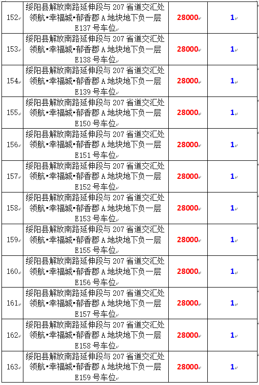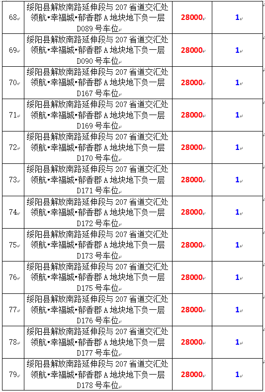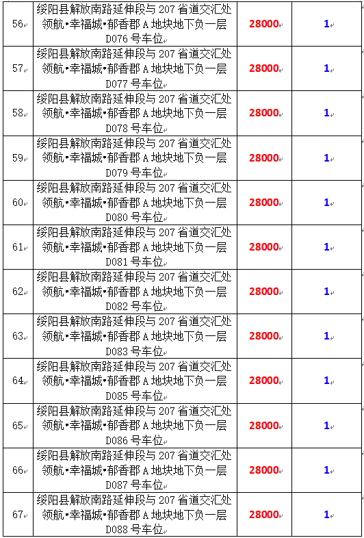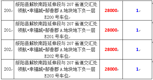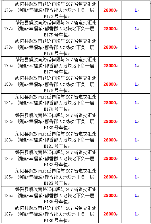 6、綏陽(yáng)縣解放南路延伸段與207省道交匯處領(lǐng)航?幸福城?郁香郡A地塊地下負(fù)一層170個(gè)車(chē)位,起拍價(jià):28000元/個(gè),競(jìng)買(mǎi)保證金:1萬(wàn)元/個(gè)。