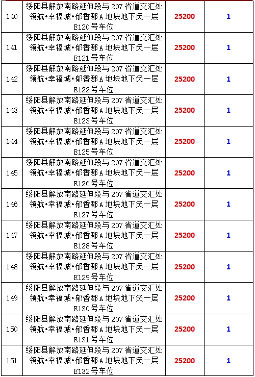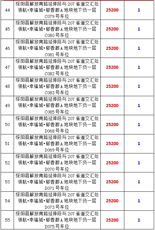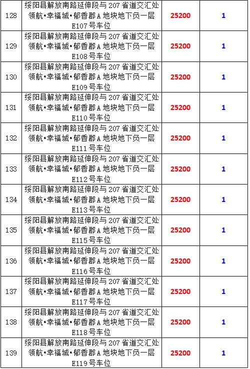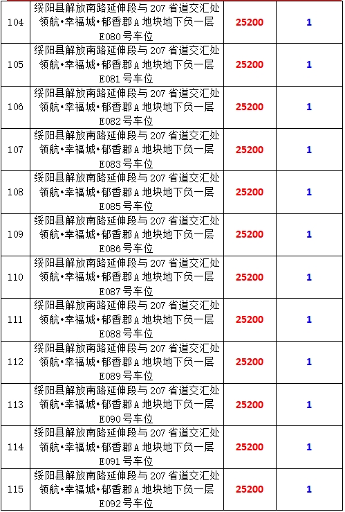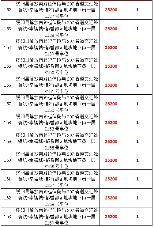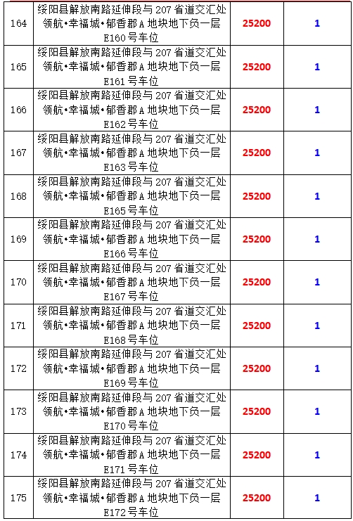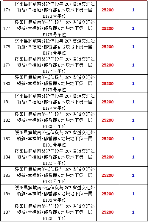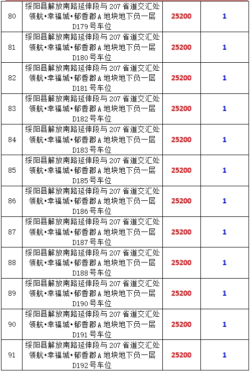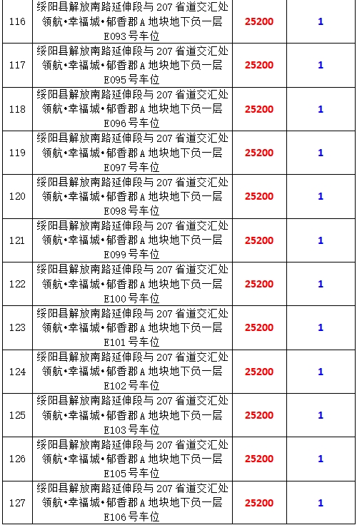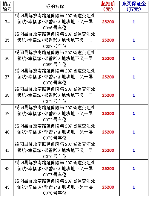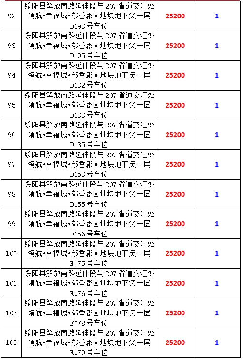 6、綏陽縣解放南路延伸段與207省道交匯處領航?幸福城?郁香郡A地塊地下負一層170個車位,起拍價:25200元/個,競買保證金:1萬元/個。