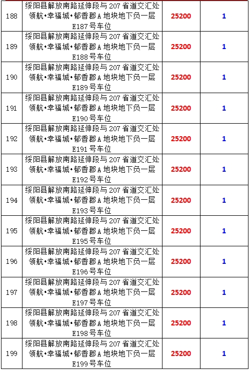 拍品編號34-203:綏陽縣解放南路延伸段與207省道交匯處領航?幸福城?郁香郡A地塊地下負一層170個車位