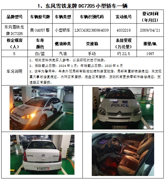 拍品編號(hào)1:東風(fēng)雪鐵龍牌、豐田牌機(jī)動(dòng)車共計(jì)2輛(整體拍賣)