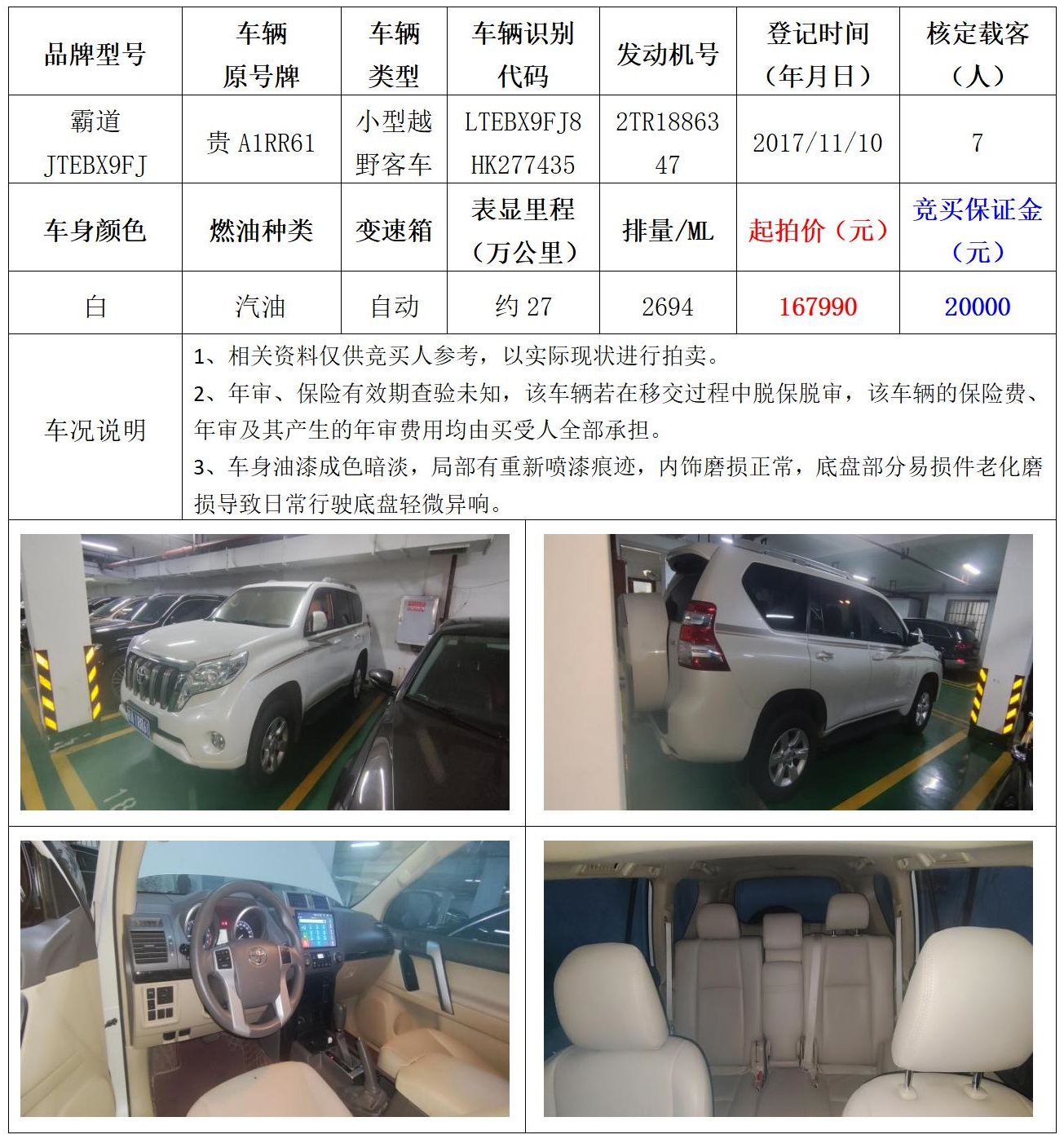 拍品編號2:霸道JTEBX9FJ小型越野客車一輛