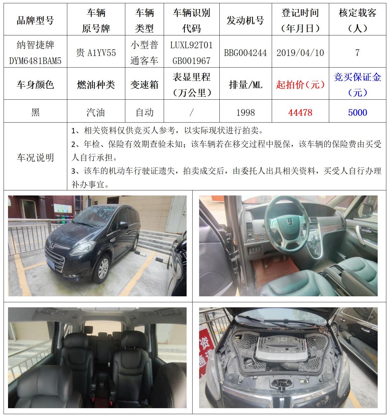 拍品編號4:納智捷牌DYM6481BAM5小型普通客車一輛