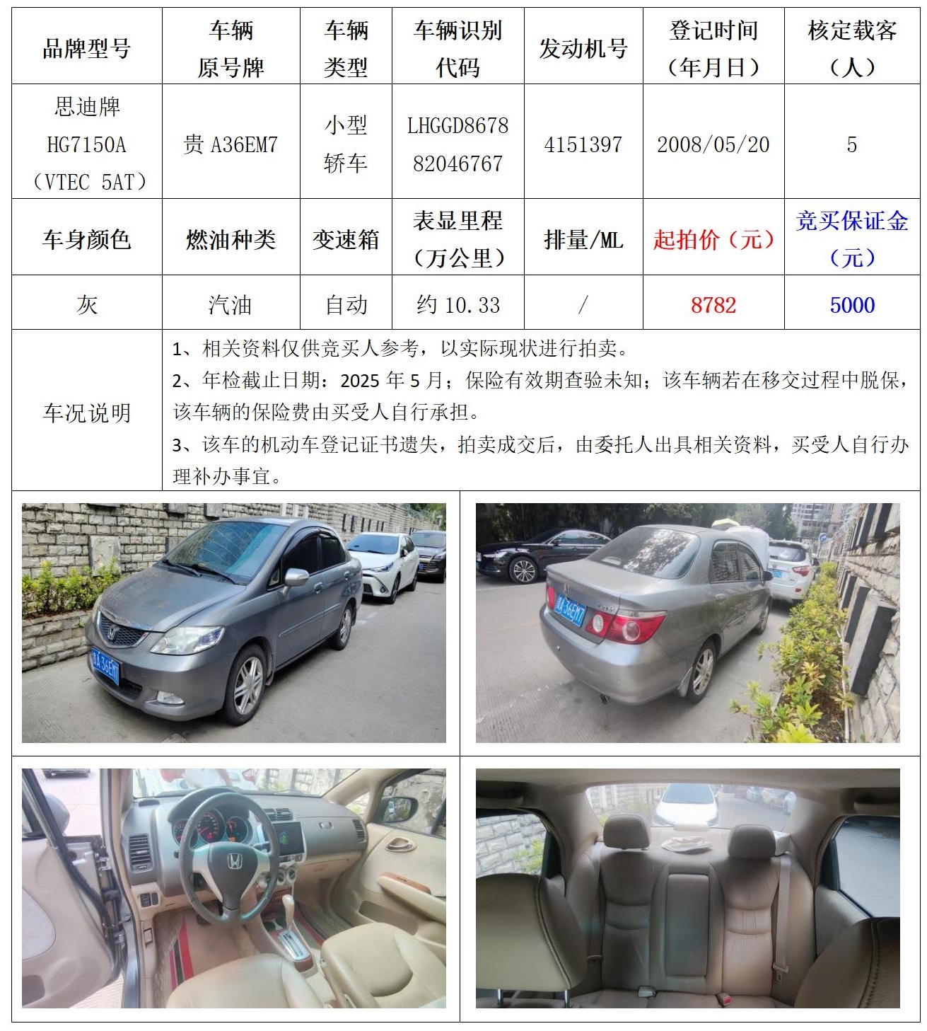 拍品編號3:思迪牌HG7150A(VTEC 5AT)小型轎車一輛