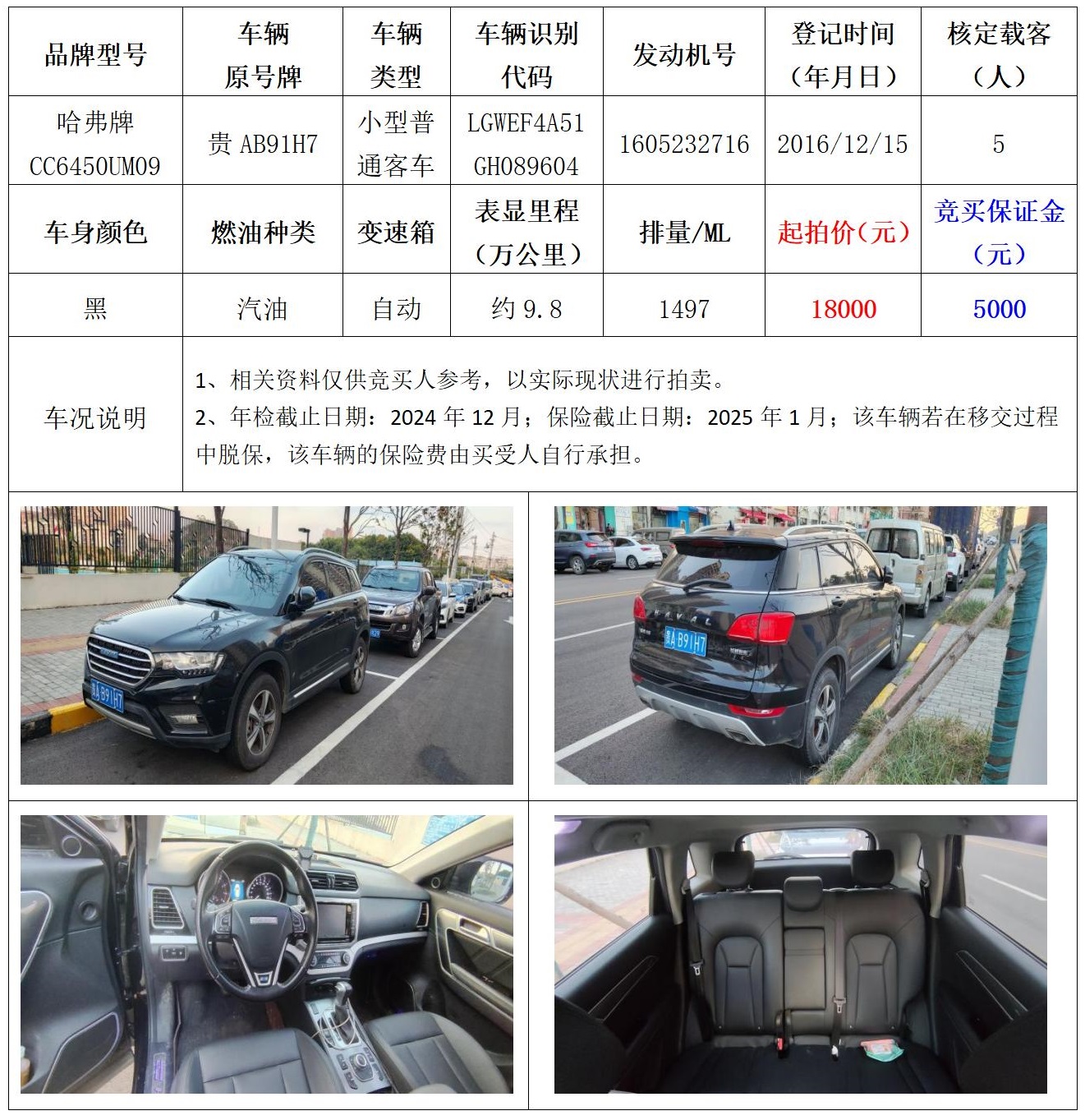 拍品編號6:哈弗牌CC6450UM09小型普通客車一輛