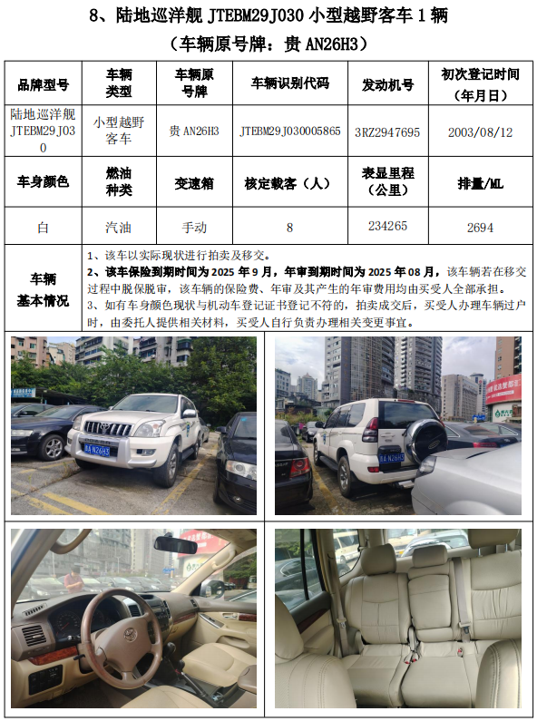 受委托,我公司定于2024年11月27日(星期三)下午14:30時(shí),在貴州省公共資源交易中心開標(biāo)室11室(貴陽市南明區(qū)遵義路)公開拍賣以下標(biāo)的:
