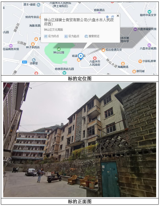 1、標的位于六盤水市鐘山區(qū)文化南路10號附1號、附2號、附3號、附4號,總建筑面積為2653.53㎡。
