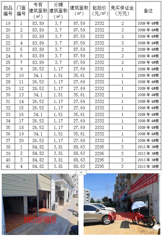 2、麻音塘片區(qū)公租房3、4號(hào)樓商業(yè)用房23間,建筑面積:27.69㎡-88.63㎡,起拍價(jià):2295元/㎡—2332元/㎡,競(jìng)買保證金1-3萬元/間。