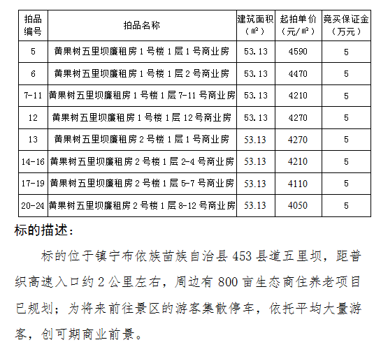 拍品編號:5-24號 黃果樹五里壩廉租房1、2號樓商業(yè)用房