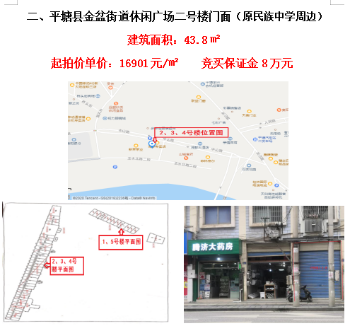 標(biāo)的位于平塘縣金盆街道休閑廣場,相當(dāng)于縣中心,人流量大,交通便利,停車場數(shù)量多,商業(yè)繁華程度較好;二號樓建成于2005年,總層數(shù)6層,1層為商業(yè);建筑面積:43.8㎡,建筑結(jié)構(gòu)為磚混,外墻為貼磚,土地性質(zhì):國有劃撥,土地用途:商業(yè)用地;區(qū)域內(nèi)公共配套設(shè)施有平塘民族中學(xué)、平塘中等職民族中學(xué)、平塘中等職業(yè)學(xué)校、貴品廣場等。