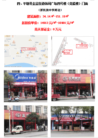 四、平塘縣金盆街道休閑廣場四號樓(競能樓)13間門面(建筑面積:34.14㎡-151.19㎡)