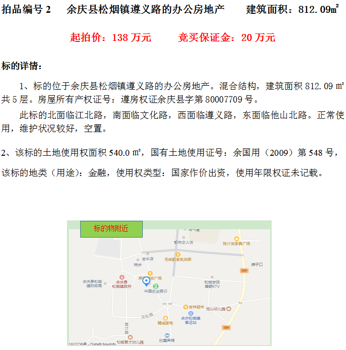 二、余慶縣松煙鎮(zhèn)遵義路的辦公房地產(建筑面積812.09㎡);