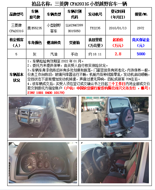 【12月28日】貴州春秋拍賣:機(jī)動車拍賣信息