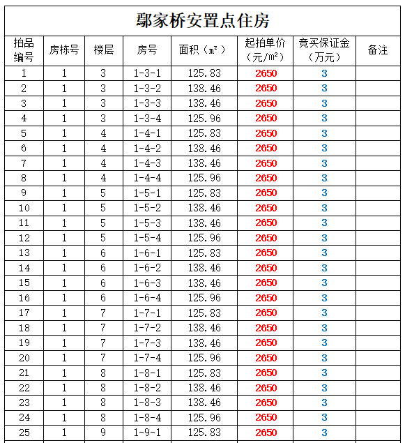 拍品編號(hào)1-257號(hào):鄢家橋安置房住房(共計(jì)257套)